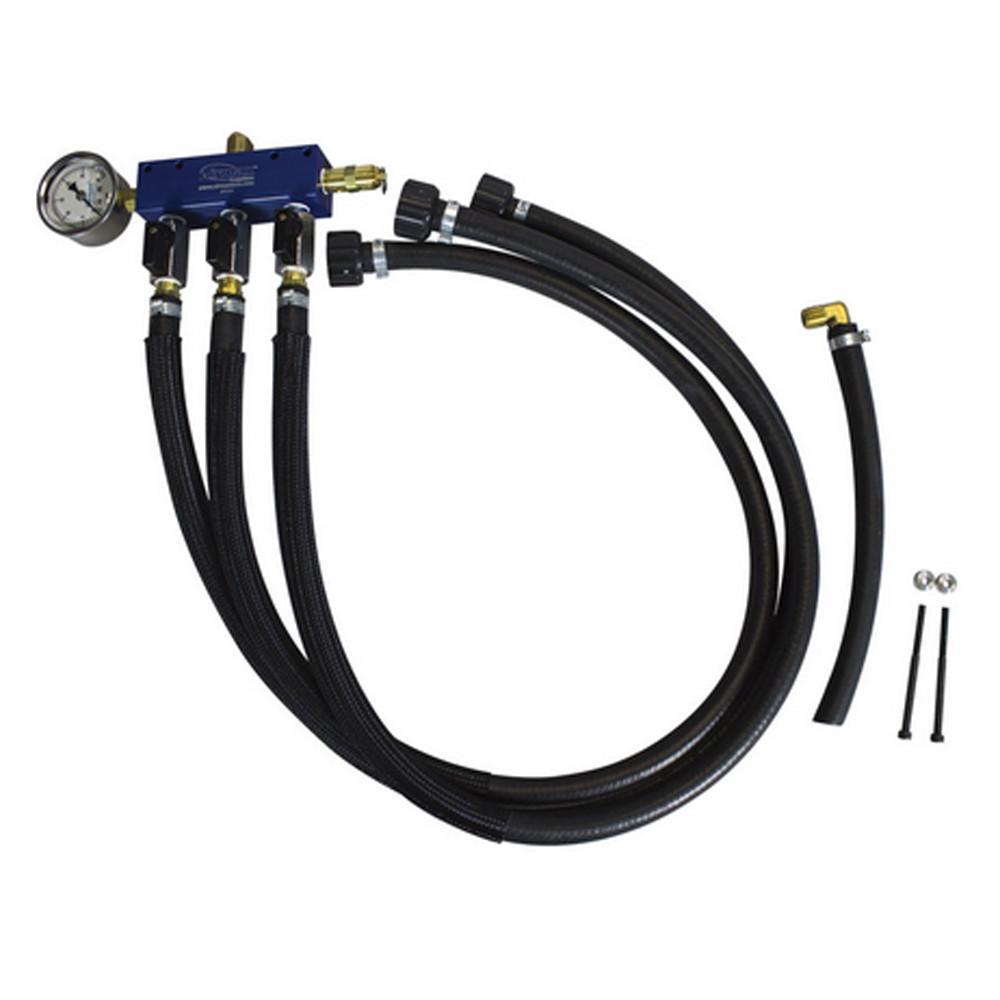 Each assembly includes: a manifold and chrome ball valve(s) to simplify airflow management, braided hose sleeve(s) to protect the internal airline(s) from wear and airline quick disconnect per airline for easy hook up or removal.