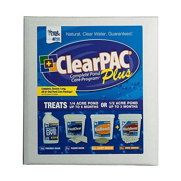Pond Logic ClearPAC PLUS ends the guesswork of pond management by combining 4 essential pond maintenance products into 1 complete pond care package. Pond Logic ClearPAC PLUS allows pond owners to eliminate algae, improve water quality, reduce pond muck, promote fish health and maintain crystal clear water in 4 simple steps.