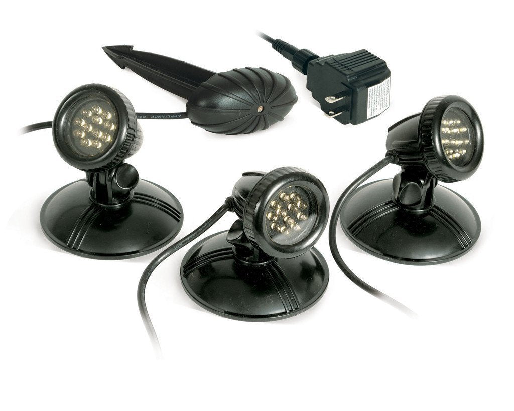 Extend the beauty of your water feature deep into the night; Atlantic's LED lighting systems make it easy! These multipurpose lights perform as well underwater as in open air applications. AWG models feature built-in photo cells that automatically turn lights on at dusk and off at dawn, eliminating the need for timers and switches.LED bulbs offer long life and low energy consumption. All Atlantic SOL lighting carries a one year warranty. Includes: Light base, photo cell, ground stake, transformer and 22' power cord.